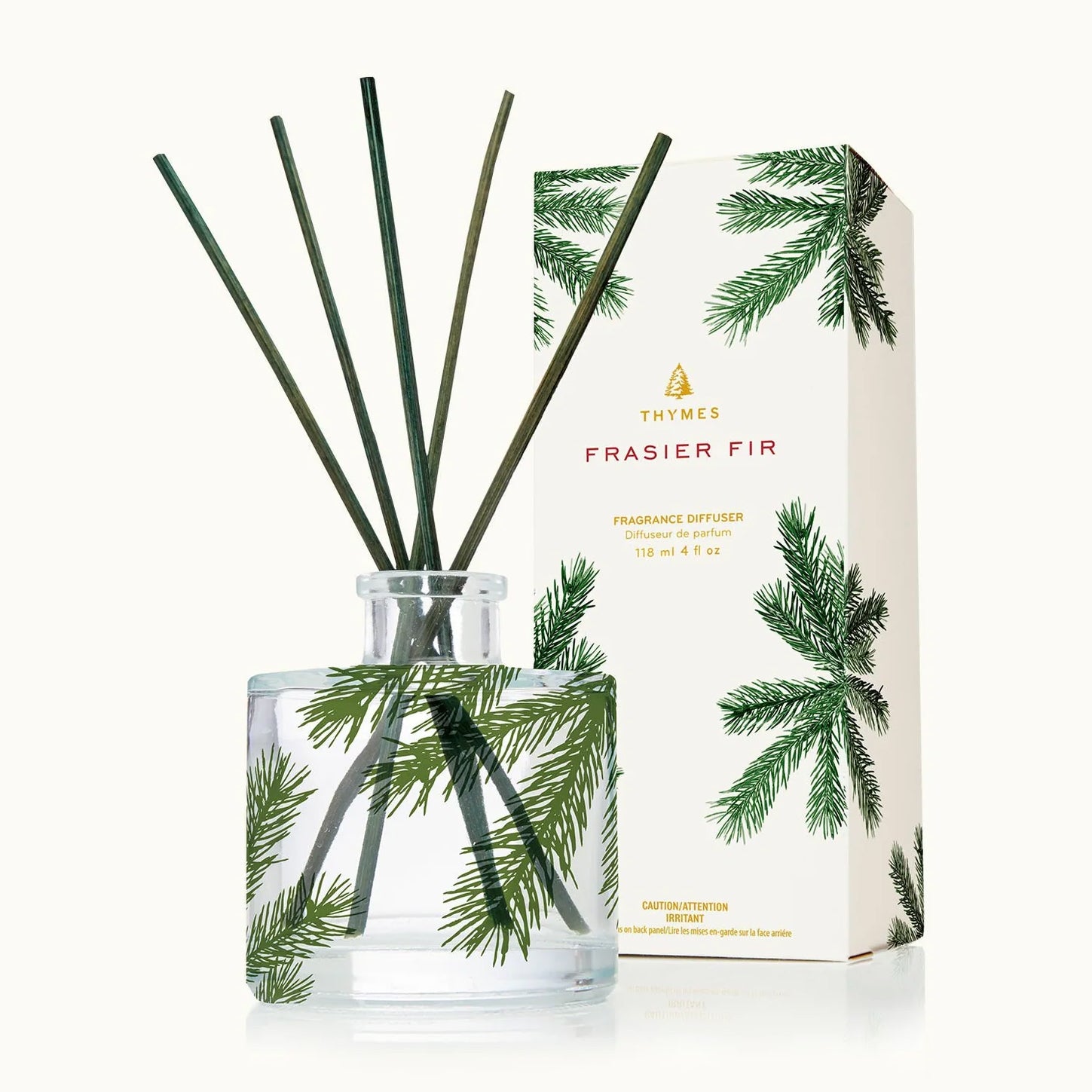 - Thymes Frasier Fir Reed Diffuser. The scent of pine, cedarwood and sandalwood never fails to give that welcome feeling of warmth and joy. 4 oz