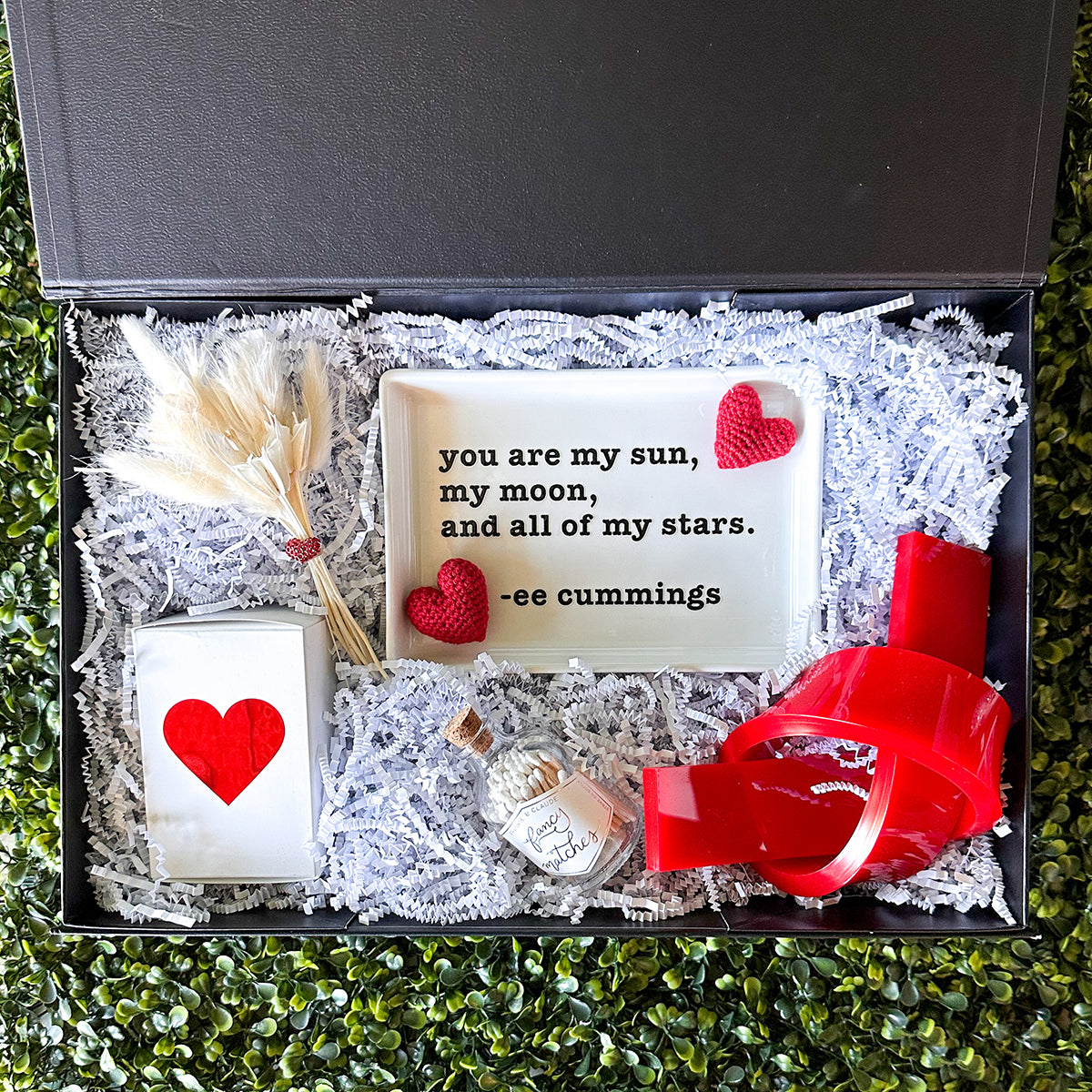 - A ceramic catchall tray with the words "YOU ARE MY SUN, MY MOON, AND ALL OF MY STARS" .