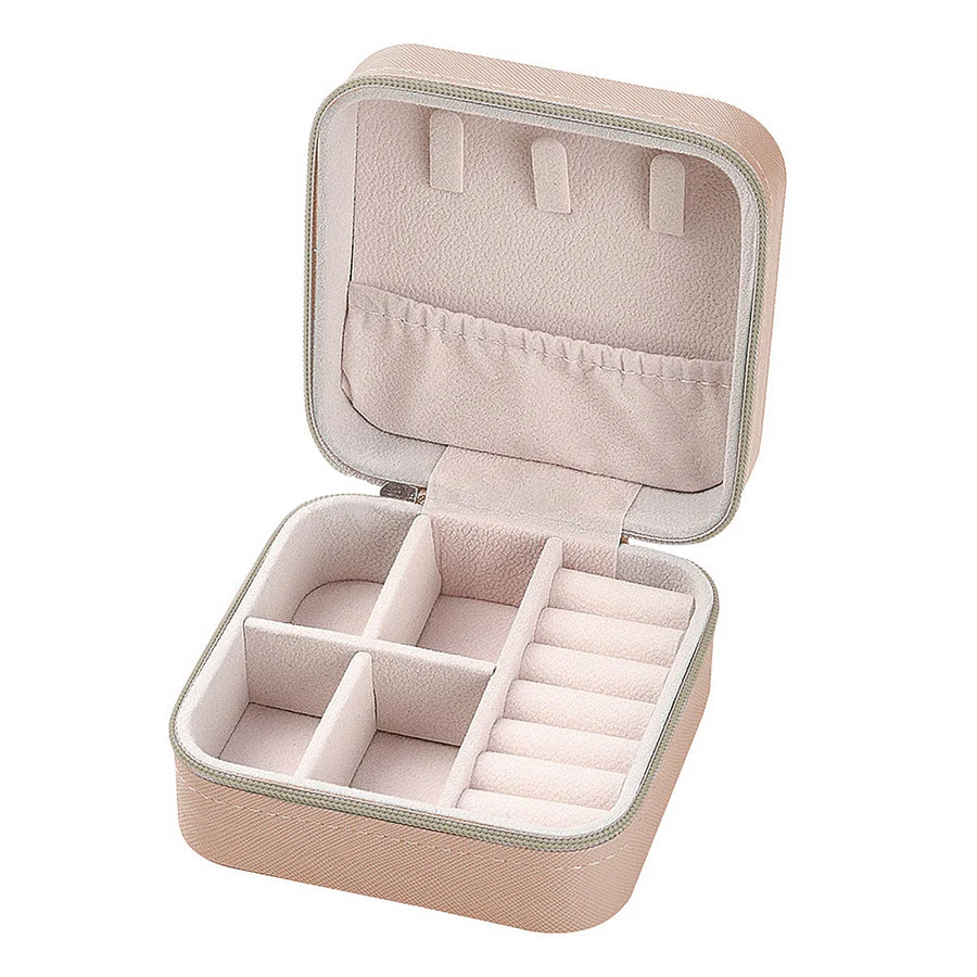 - Travel Jewelry Box. Made from a durable textured vegan leather in a blush color with a soft lining, this case features multiple compartments for organization.