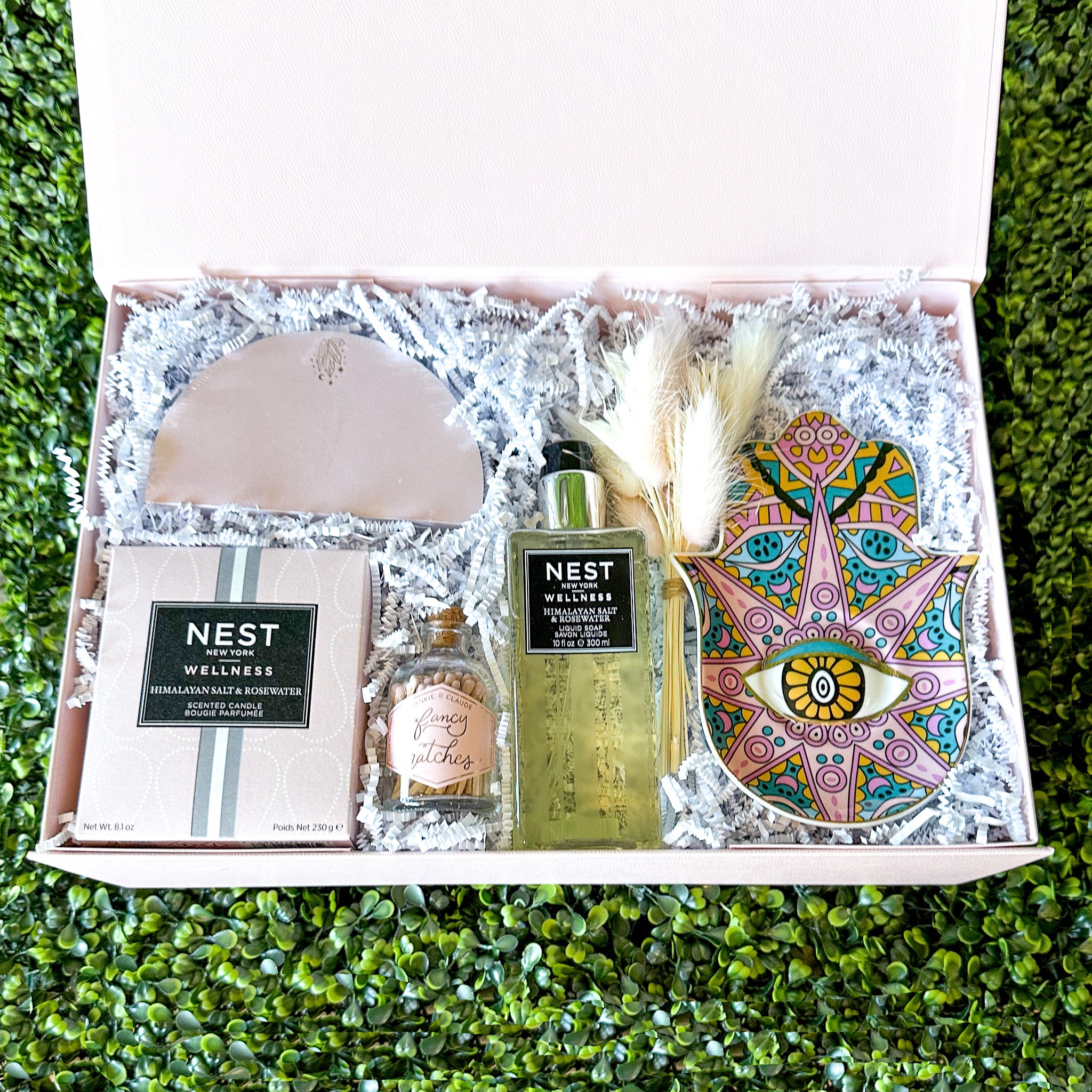 - Nest Himalayan Salt & Rosewater Classic Candle  featuring notes of rosewater, geranium, salted amber, and white woods.Burn time: 60 hours.