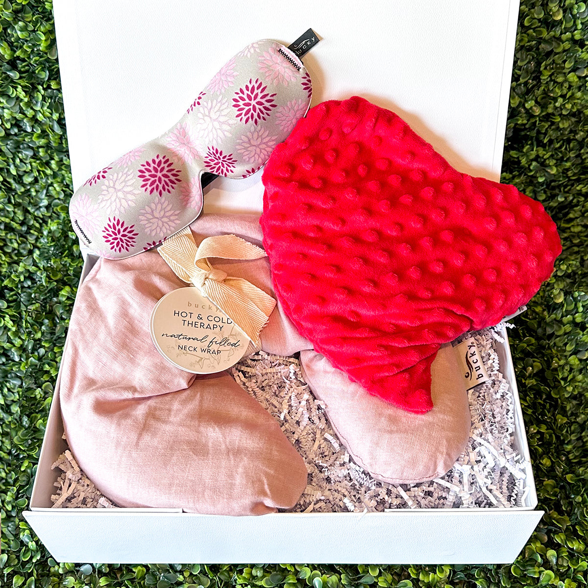 - Hot/cold therapy buckwheat seed-filled heart for focused spot treatments